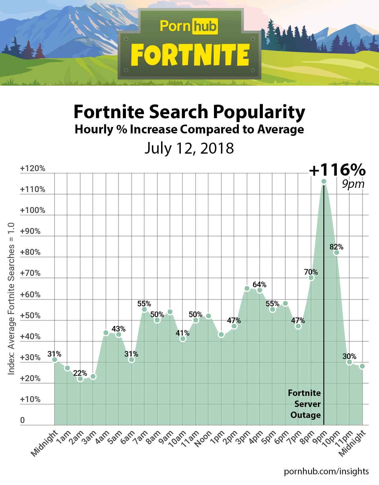 Fortnite fans anxious to try the new updates crowded the game’s servers, causing them to crash and go offline around 9pm (ET). It’s seems that when gamers couldn’t connect to play with their online friends, they instead went to Pornhub to play with themselves.