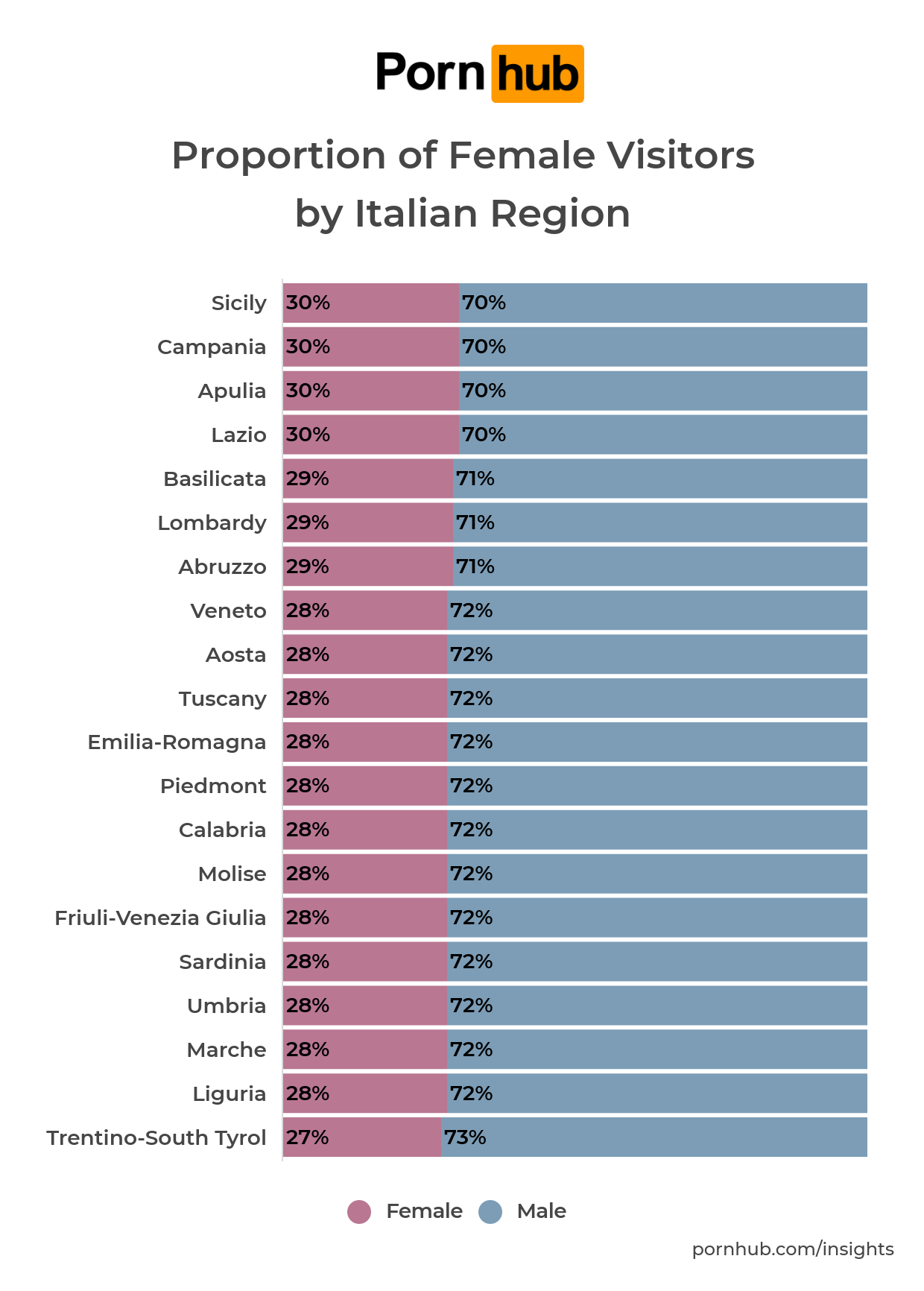 Today, Pornhub Insights once again brings you on a magical female friendly trip around Italy’s regions with an insightful look at the women of Italy along with our friends at Esquire.