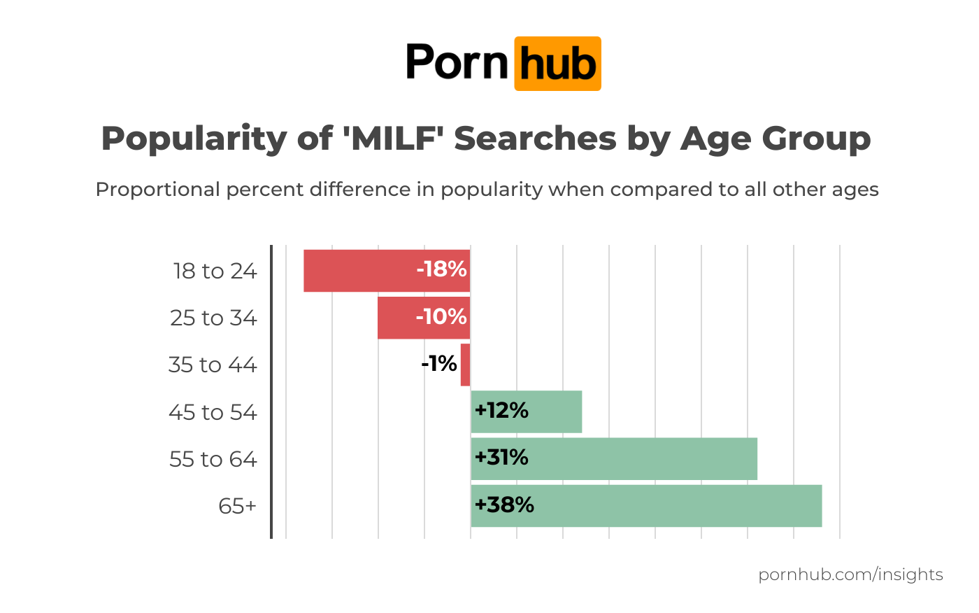 In other words, people below the age of 44 searched MILF porn less than people above the age of 45.